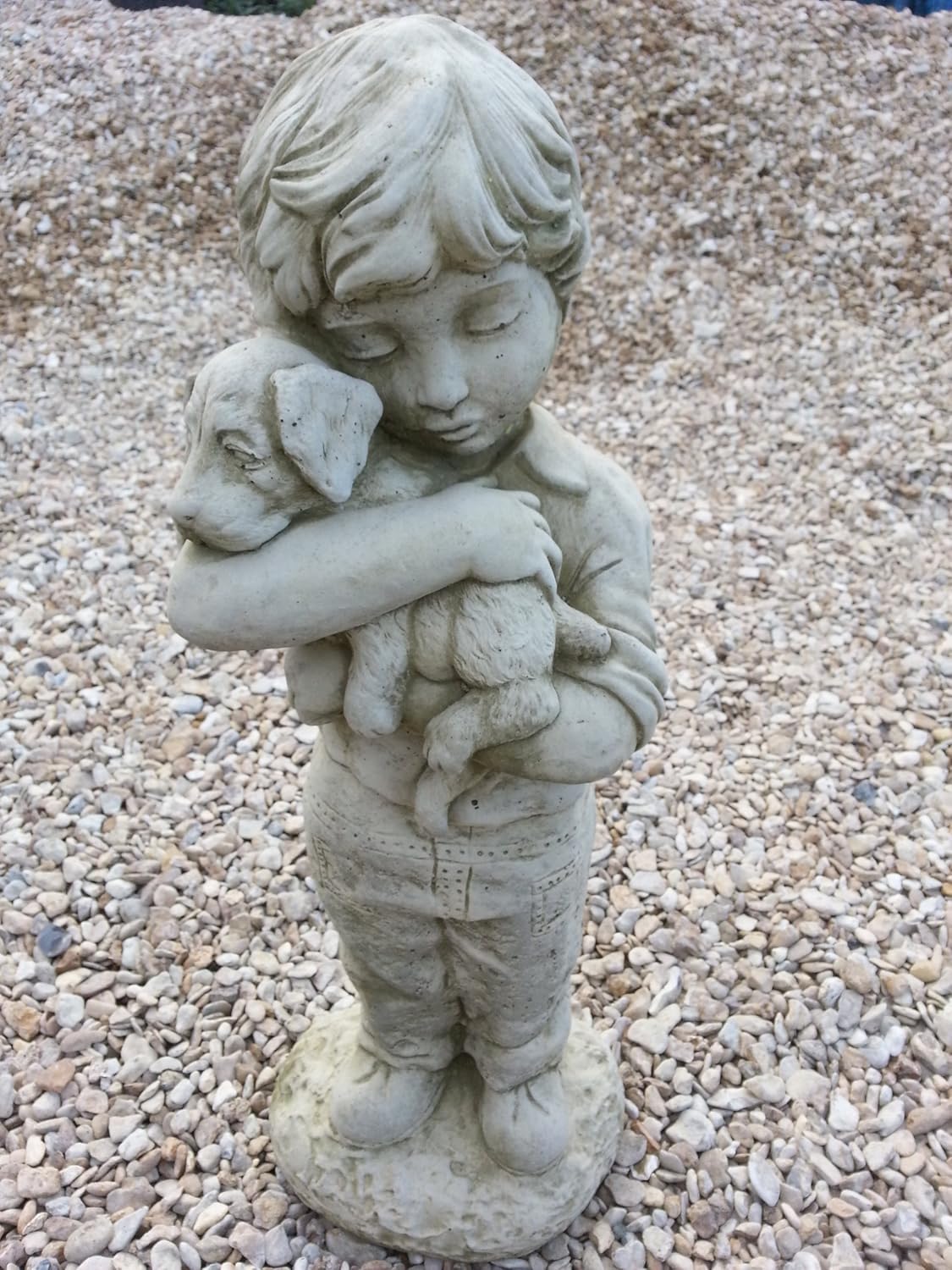 Stone Concrete Statue Boy Dog Amazon Co Uk Garden Outdoors