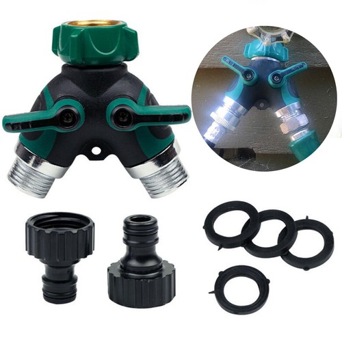 2 Way Garden Hose Splitter Tap Connector Y Type Adaptor Two Outlet