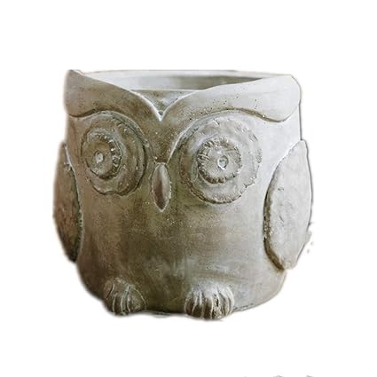 Small Owl Embossed Green Plant Planted Cement Pot Herb Flower