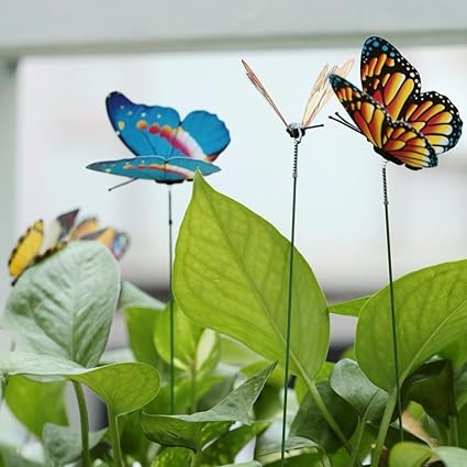 Ginsco 25pcs Butterfly Stakes Outdoor Yard Planter Flower Pot Bed