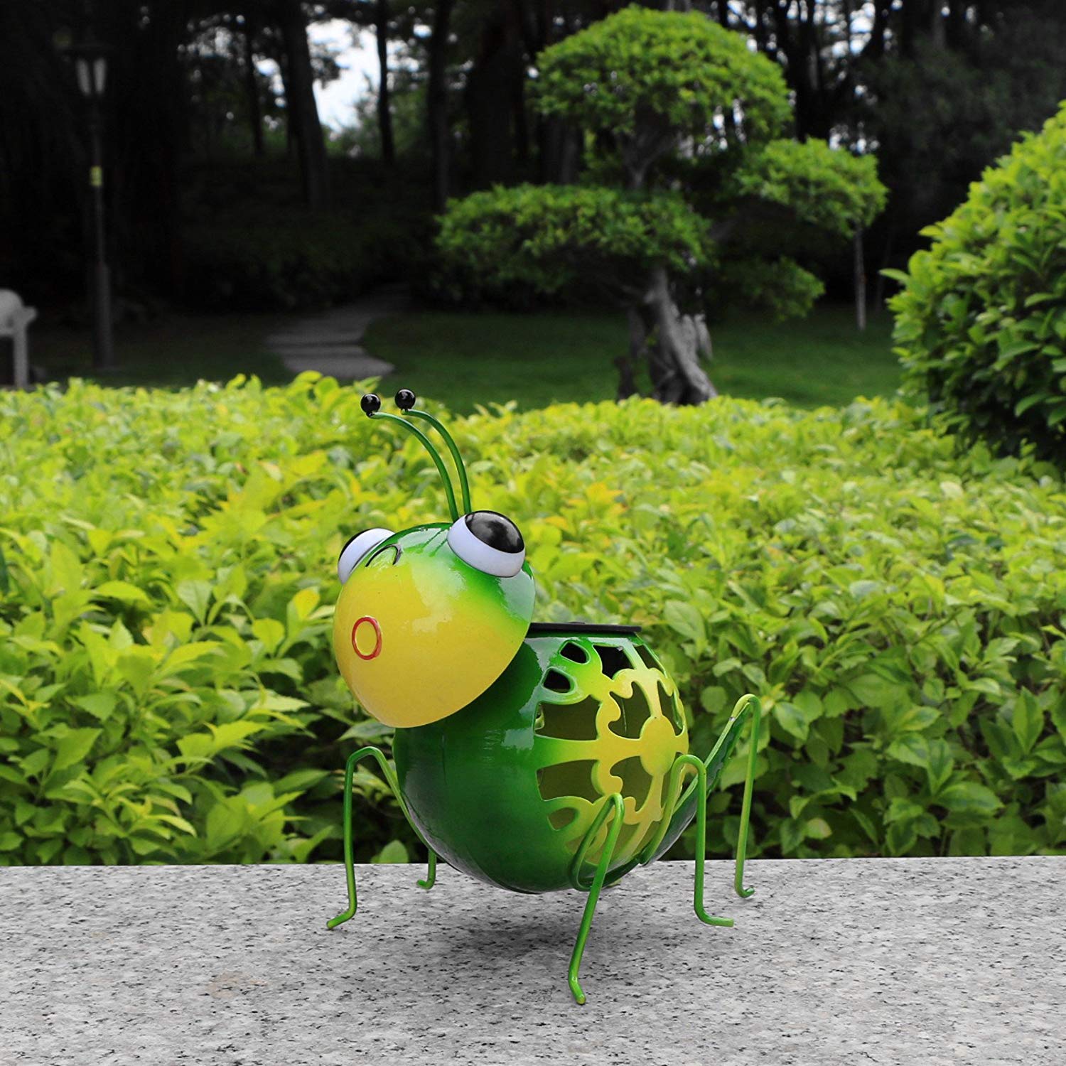 Solar Animal Lights Metal Grasshopper Statuette With Multi Colors