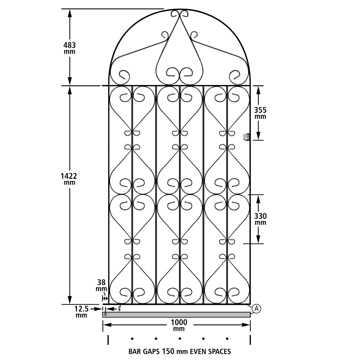Gap X 1980mm High Wrought Iron Swing Gate St30 2ft6in Stirling